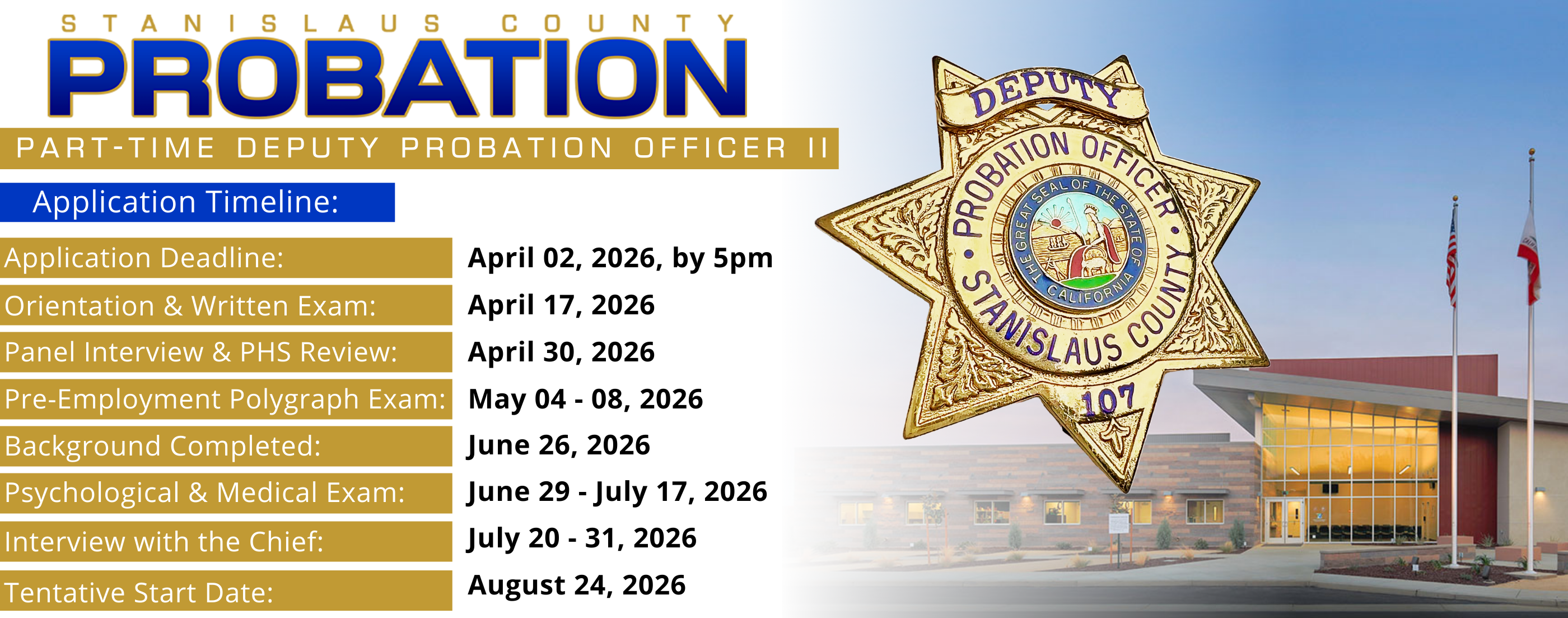 This part-time role as a Deputy Probation Officer II involves supervising individuals on probation, conducting assessments, and helping them reintegrate into the community while ensuring public safety in Stanislaus County.