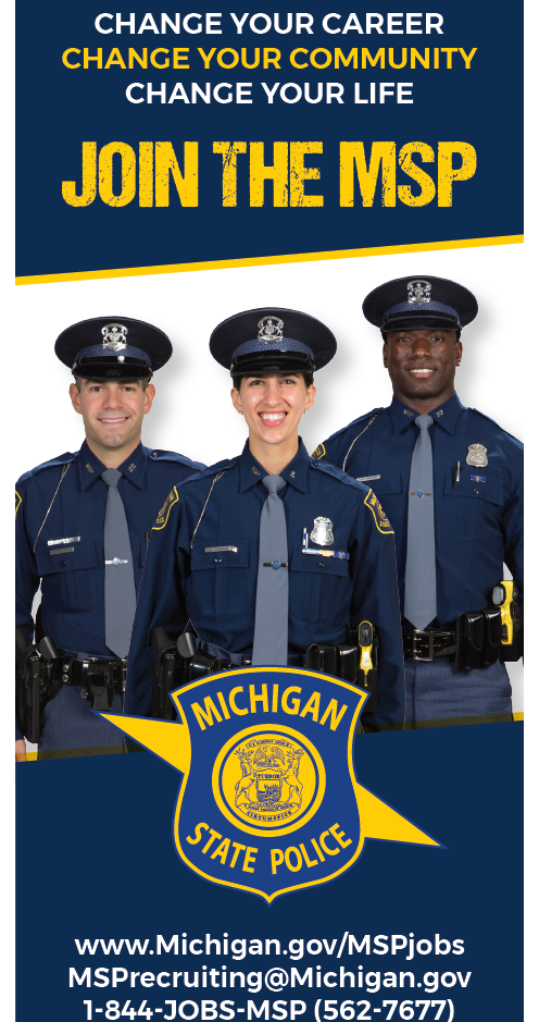 This job is for becoming a Michigan State Police Trooper, where you'll patrol roads, enforce traffic laws, investigate crimes, and help the public as a certified police officer.