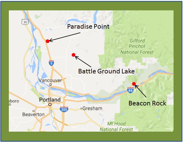 Battle Ground Lake State Park - (located in Clark County) is a forested camping park in the Cascade Mountain foothills; its proximity to Vancouver and Portland and its cool green lake make it a great escape from the bustle of city and suburbs.