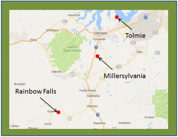Staff for Rainbow Falls also cares for the Willapa Hills Trails, a 56-mile multi-use rail trail from Chehalis to South Bend.Tolmie State Park - (Thurston County) is a 154-acre marine day-use park with 1,800 feet of saltwater shoreline on Puget Sound.