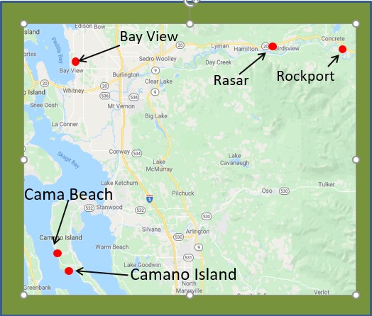 Cama Beach State Park - (located in Island County) is set in a spectacular, 486-acre waterfront location against a forested backdrop.