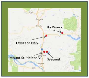 St. Helens Visitor Center, and Seaquest State Park.