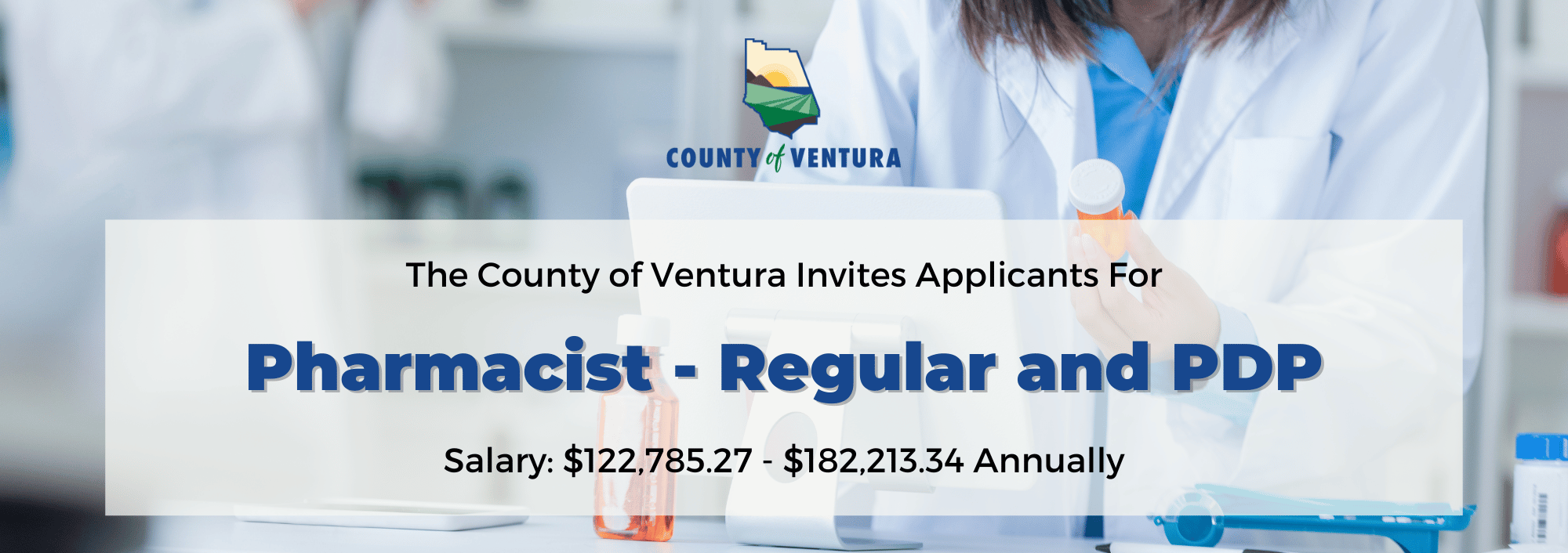 The County of Ventura offers an attractive compensation and benefits package. Aside from our base salary range, an employee within the Pharmacist classification will also be eligible for the following: