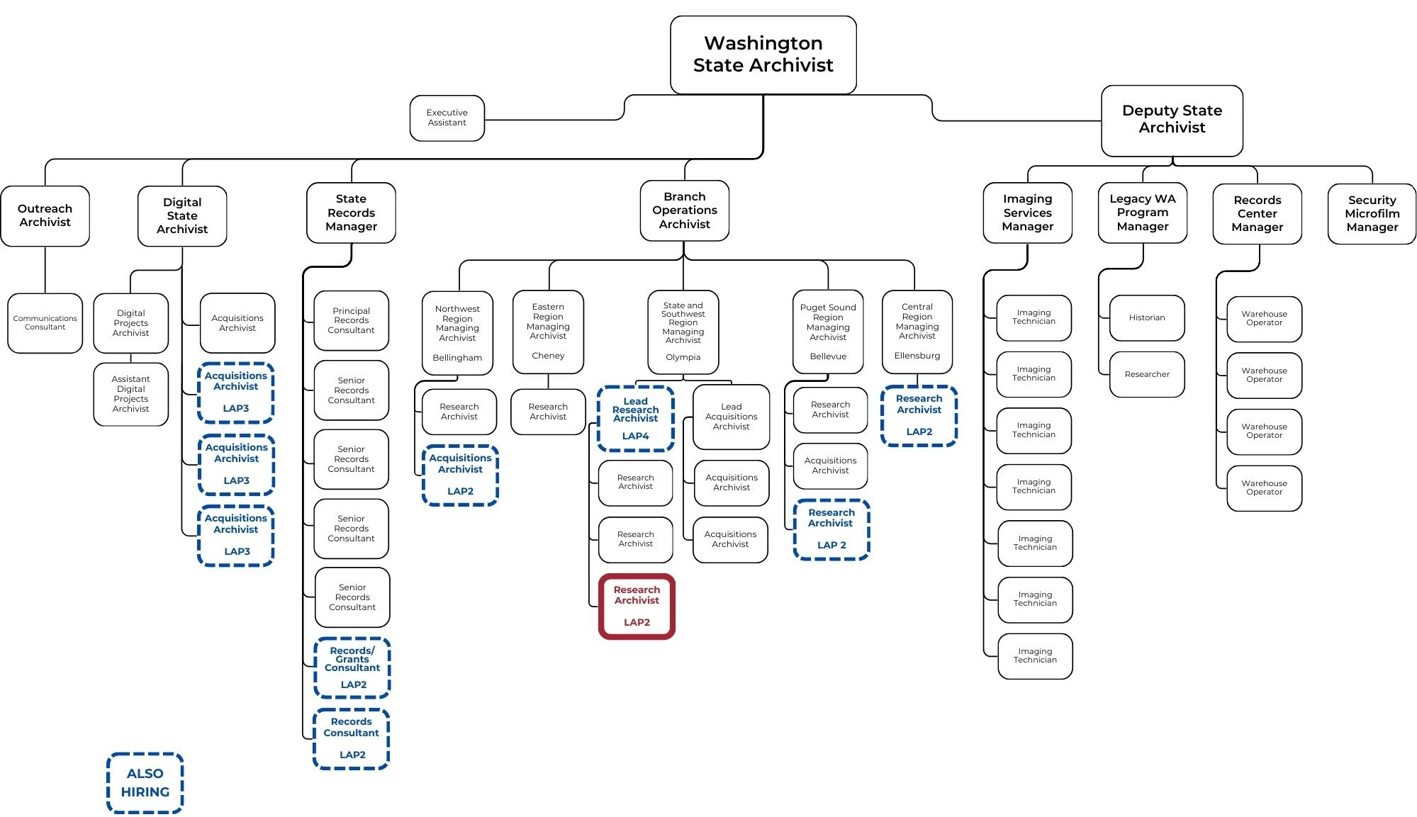 To meet the needs of our transferring partners, improve discoverability of records, and increase access to the collection, the Archives is expanding its staff and currently hiring for several positions, including a Research Archivist for its State and Southwest Regional Collections located on the Capitol Campus in Olympia.